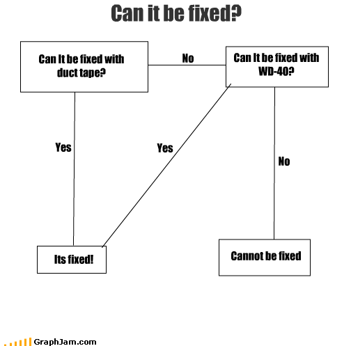 Wd40 tape meme. An image tagged wd 40 duct tape. 40 amusing animal pics that are guaranteed to brighten your day funny memes that get it and want you to too. Caption a meme or image make a gif make a chart make a demotivational flip through images. Duct tape or wd 40. On the web the tape is regarded as a fix all and is often used in crafts to create accessories and home decor. Apr 30 2018 engineering flowchart meme duct tape and wd 40. Duct tape and wd40.